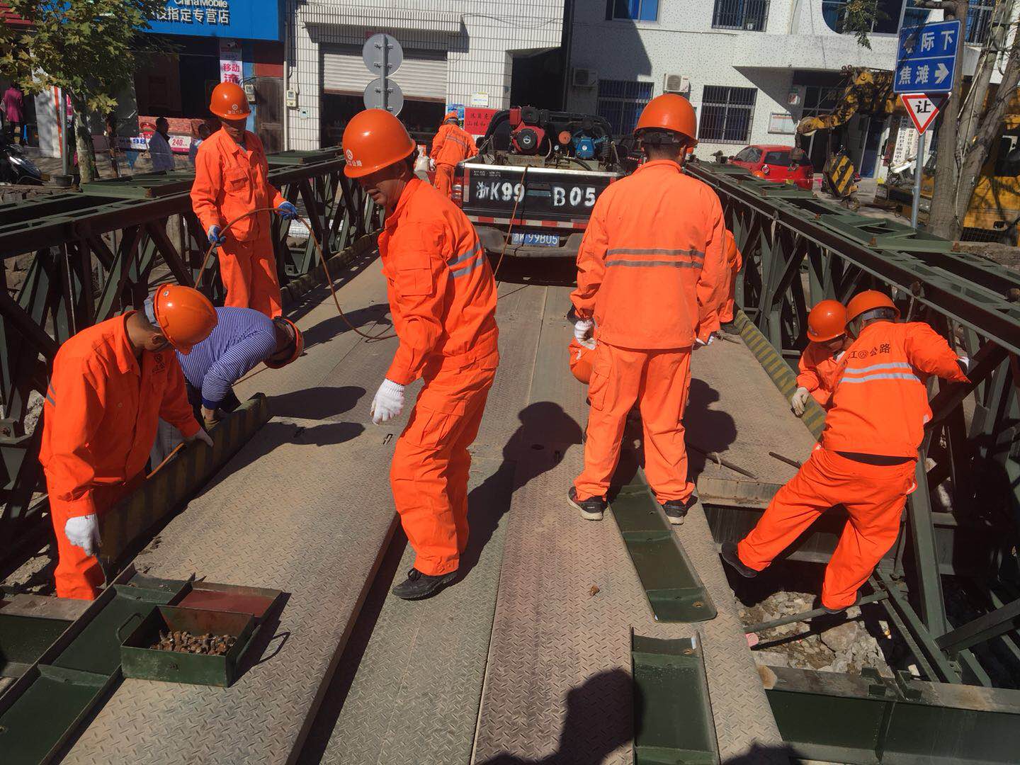 11月28日,遂昌公路局架设战备钢桥应急分队到达黄沙腰镇,开启黄沙腰临时战备钢桥拆除工作,此次拆除预计在3天内完成。