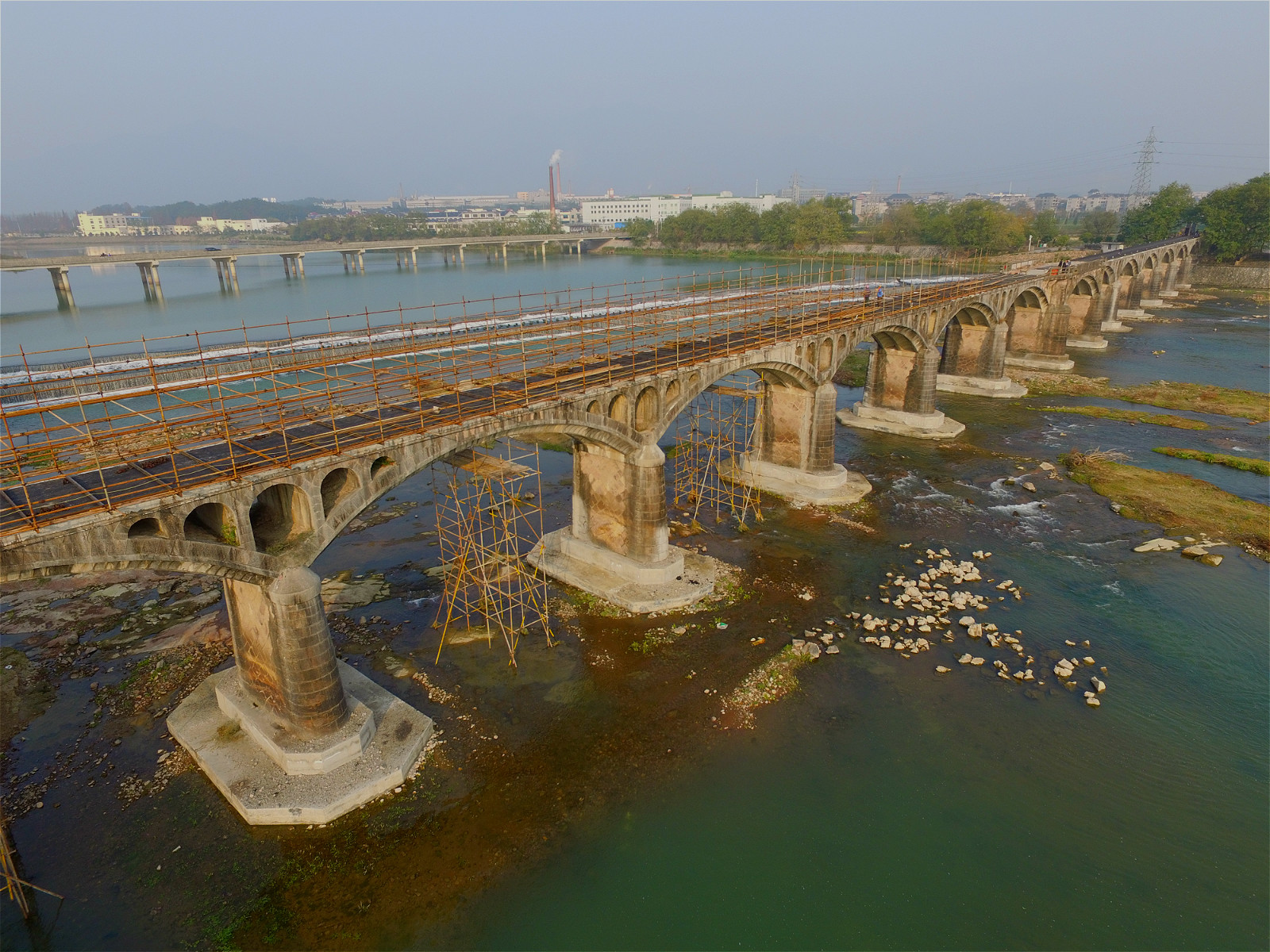 结合松阴溪4A景区创建工作,松阳县计划投资600多万元,对位于午羊堰附近石门圩大桥进行改建,上部为轻质木结构廊桥,建筑面积1241平方米。目前,基础加固工作已经完成,廊桥部分正在紧锣密鼓建设当中,建成后将成为人们理想的聚集休闲观光场所。(投稿:许士发 叶寒青)